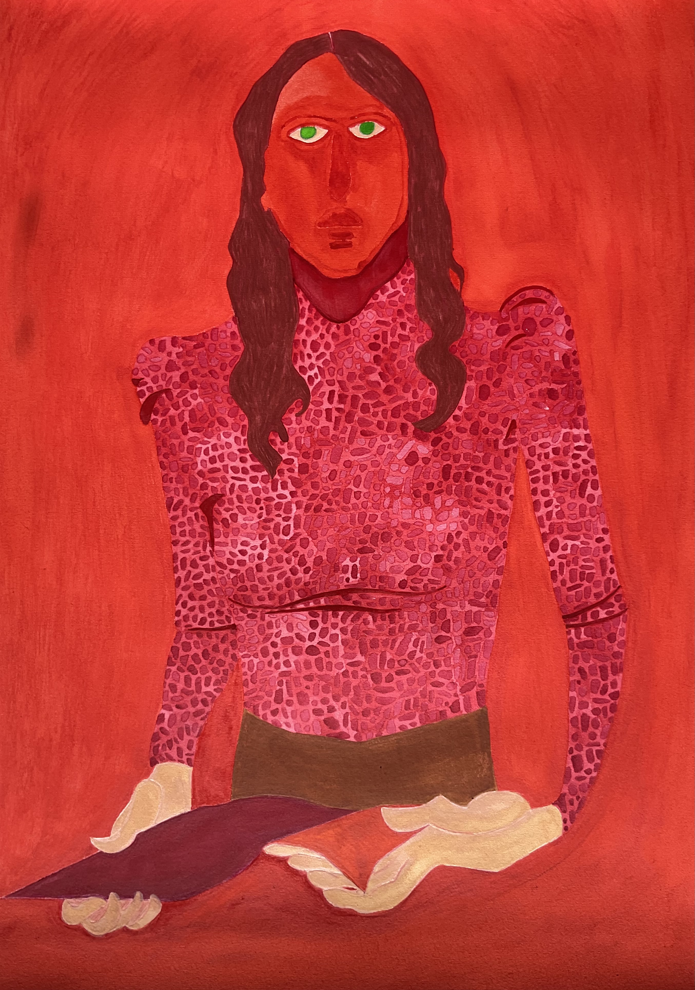My submitted artwork was inspired by the Russian propaganda machine, and it’s 'fake news', doled out to dupe the masses. It is also a nod to Matisse’s 'The Red Studio', with an almost total red colour palette.