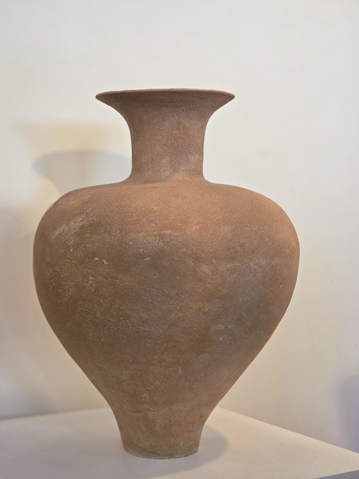 Materials: Large hand built coiled vessel, engobe on textured surface, stoneware