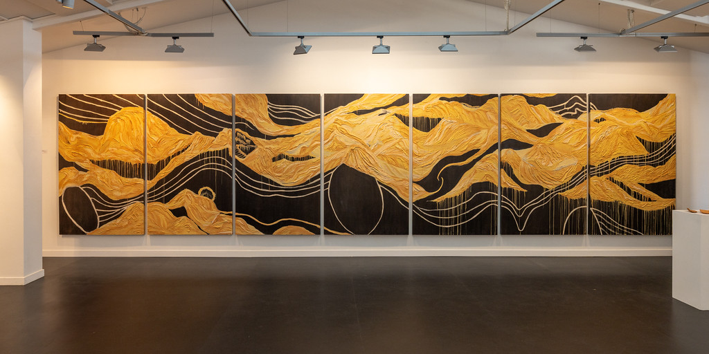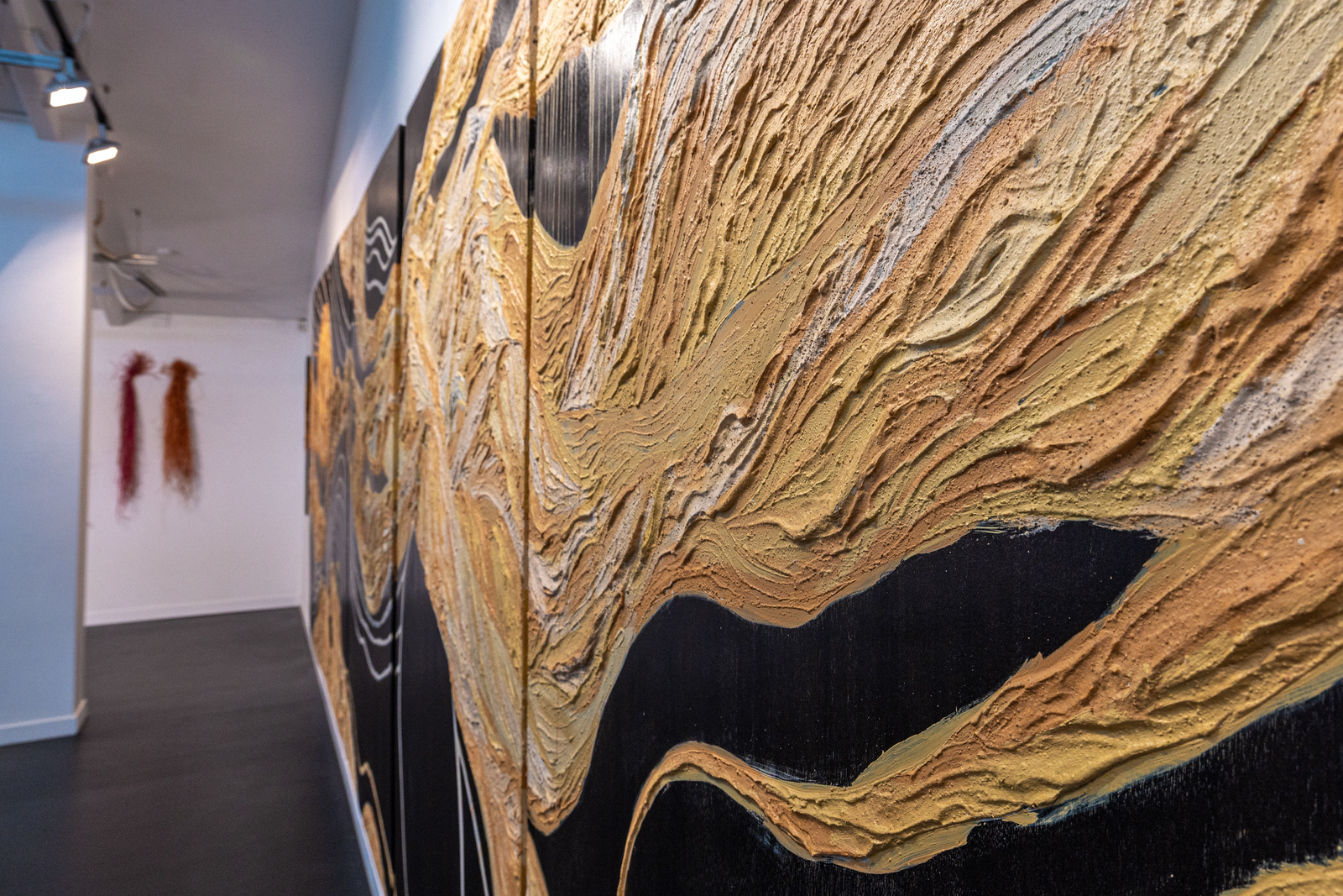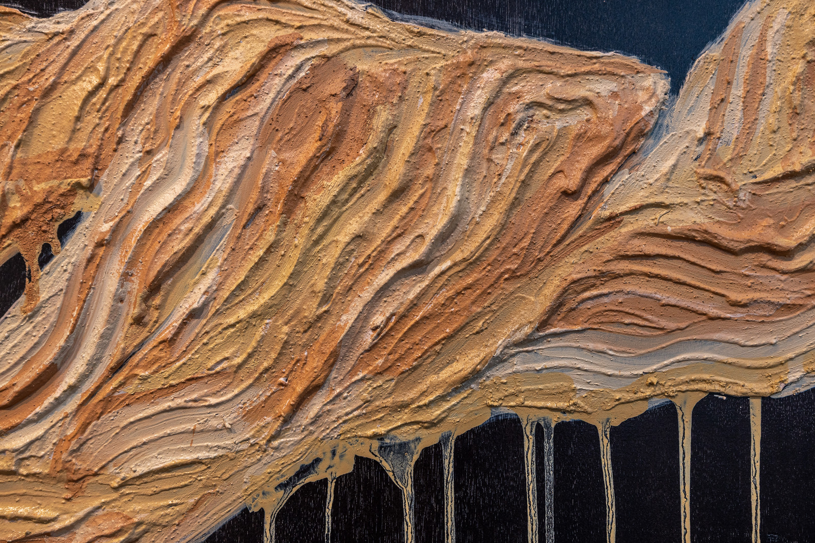 As rivers carve valleys, leaving traces in their flow, so too do my fingertips create ravines in the artwork—echoes of roots, channels, and lifelines. Each mark carries story, strength, and transformation....